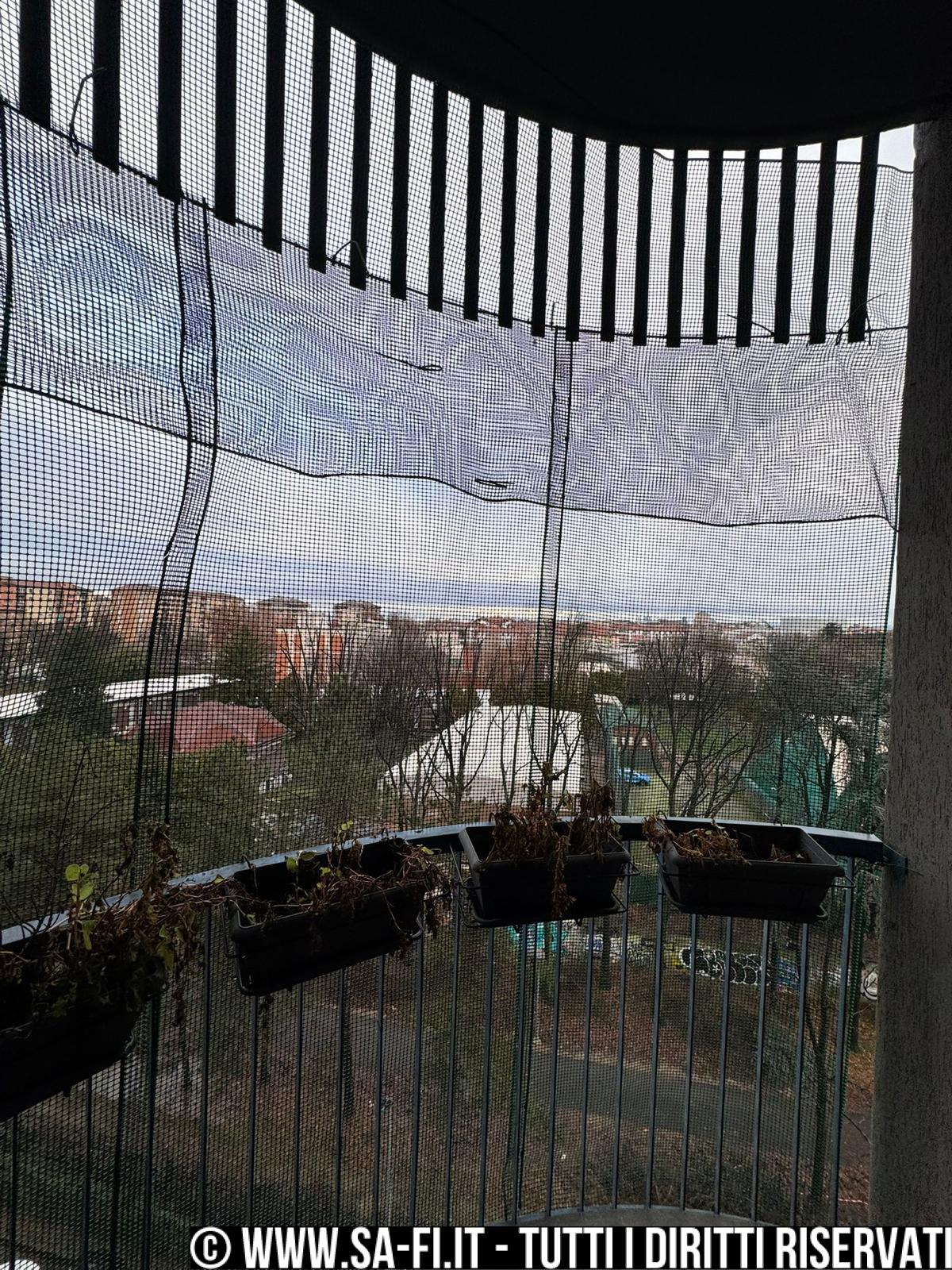 Nella seconda immagine si nota una installazione professionale di rete per piccioni.