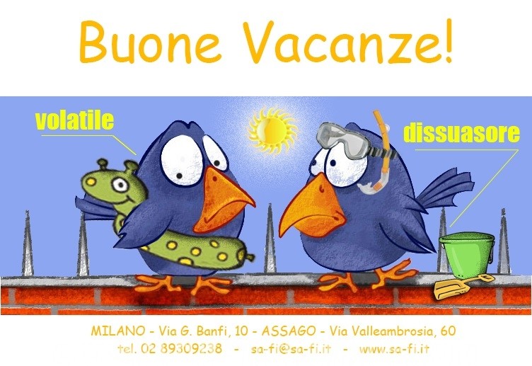 Questo post per informarvi che saremo chiusi dal 05 Agosto al 21 Agosto MA SEMPRE PRESENTI per rispondere a qualsiasi vostro dubbio in materia di allontanamento volatili in modo da essere pronti ad intervenire appena torneremo dal nostro e dal vostro…